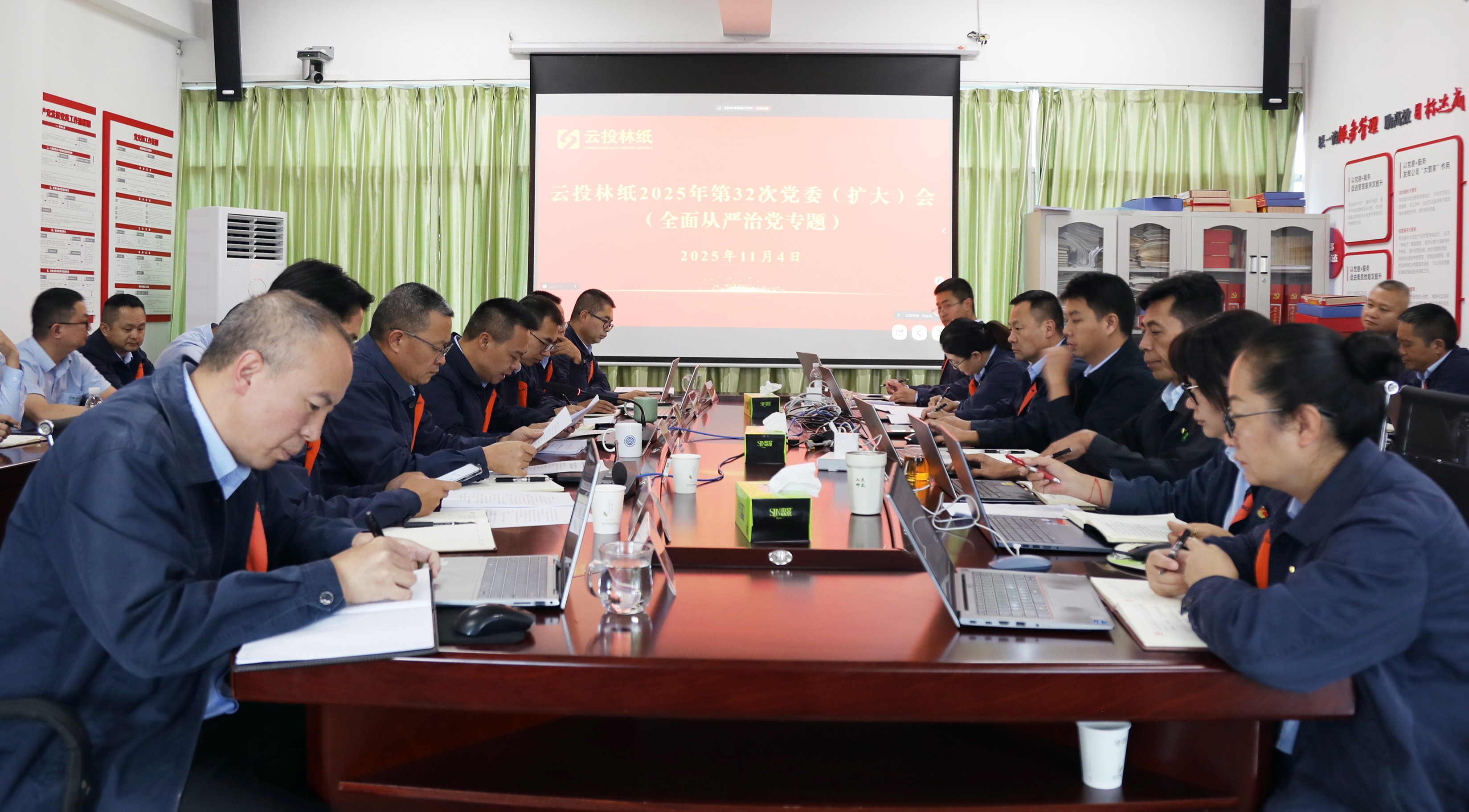 11月4日,云投林紙召開2025年第32次黨委(擴大)會議,專題研究公司黨委全面從嚴治黨工作。公司黨委書記、董事長石炳有主持會議并講話...